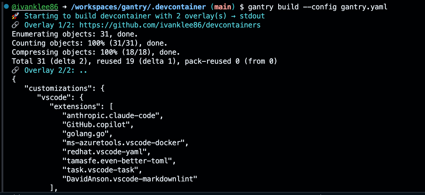 I'd like to introduce folks to the gantry CLI! It's a Go CLI that addresses devcontainer.json distribution challenges for engineering teams.